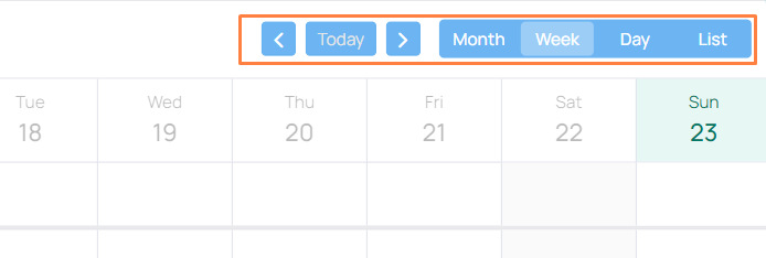 | Week  | Displays the default week and all the days as columns                                                                                  |