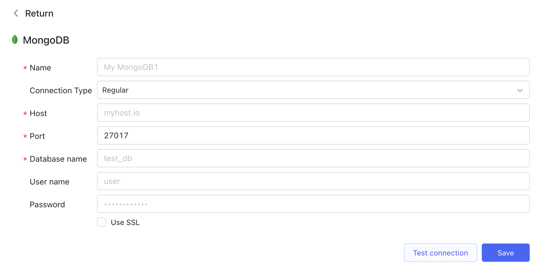 Click **Test connection** to check whether you can make a successful connection to data source based on current settings. Click **Save**.